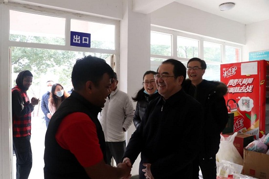 春节期间,校党委书记田辉玉在学校办、校工会、后勤部门、国际学院负责人的陪同下,前往阳光校区看望了寒假留校的国际学生,送去了新春祝福和节日问候。