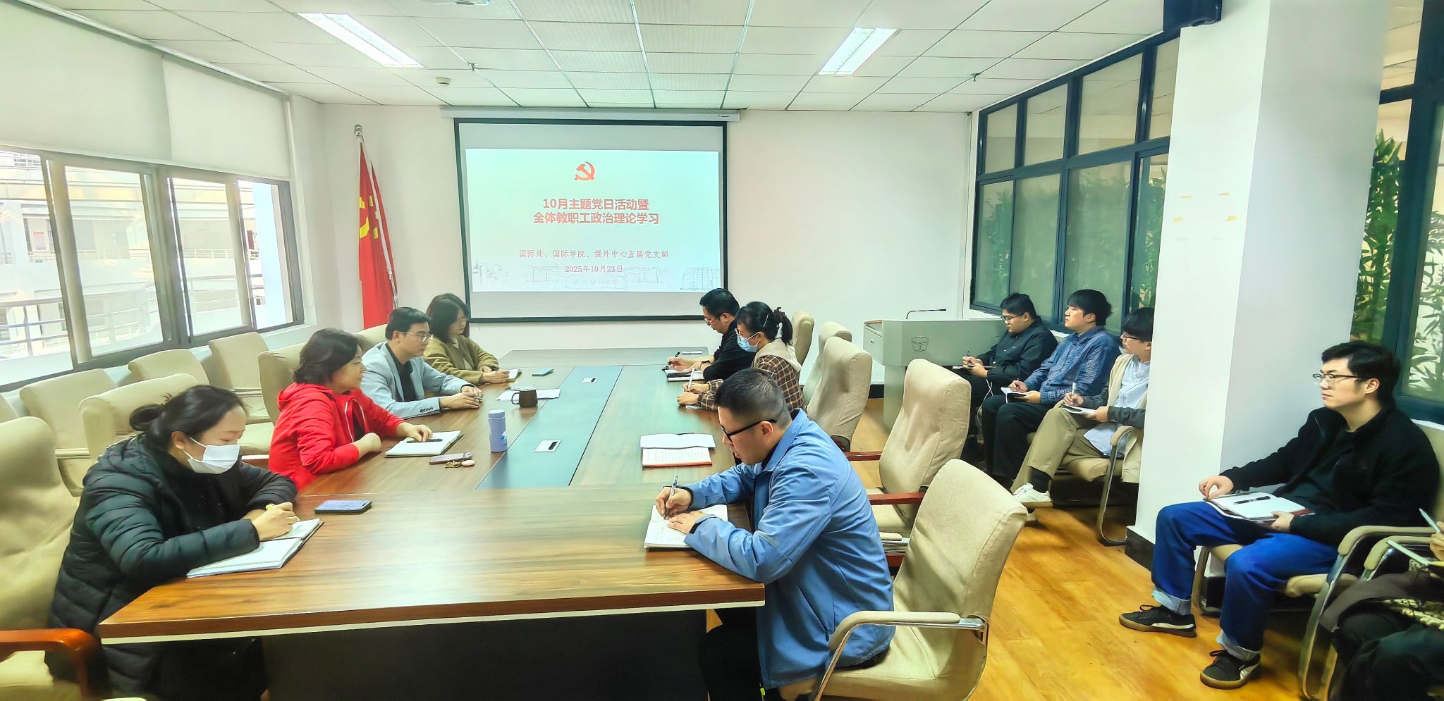10月23日,国际处、国际学院、援外中心在国际交流中心会议室开展10月主题党日活动暨全体教职工政治理论学习会,旨在深入学习领会湖北省支点建设战略部署,结合处、院、中心工作实际,明确未来学校国际化发展方向。
