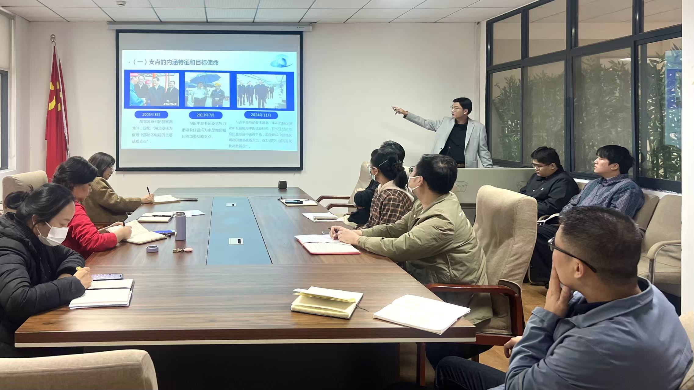 国际处处长计臣以“从相信开始——支点我们如何锻造”为题讲专题党课。他围绕支点建设的使命、路径与保障三大维度,结合近期在党校的学习体会,深刻阐释了湖北省在新发展阶段所承载的重大历史责任与发展机遇,并就实现战略目标的系统性路径与关键保障机制作了深入剖析。计处长强调,在开展工作和项目申报过程中要立足国家与区域发展全局,精准把握教育对外开放面临的新形势、新挑战,增强战略视野与系统思维。在此基础上,他将宏观战略与学校发展现状相结合,对标对表,分析了当前国际合作与来华留学生教育中存在的突出问题,提出具体工作思路与实施举措。