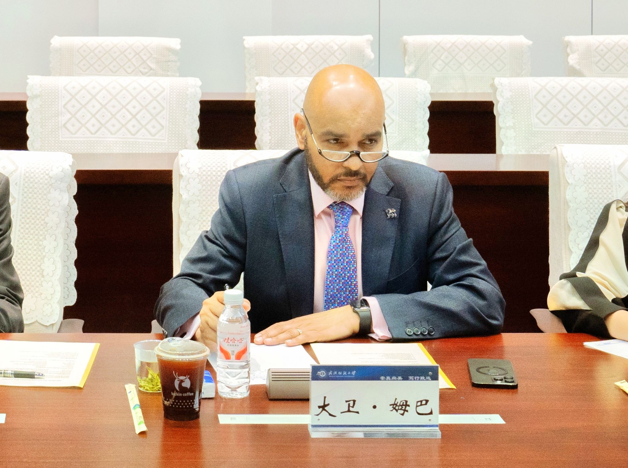 徐卫林对David mba一行的到访表示热烈欢迎,并对英方长期以来对两校合作给予的大力支持表示衷心感谢。他指出,姆巴校长再次莅临纺大指导工作,不仅见证了双方深厚的友谊,更彰显了深化合作的共同意愿。他期待,在现有艺术学科合作基础上,双方能将合作领域拓展至工程与计算机等前沿学科。