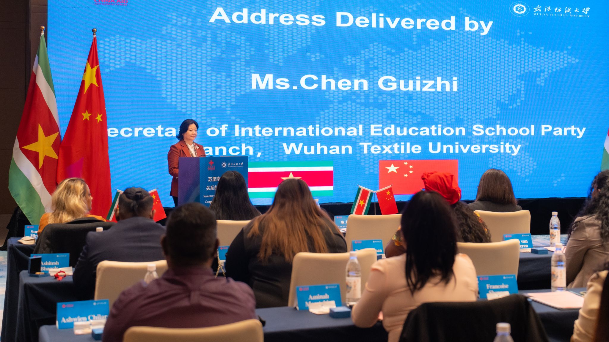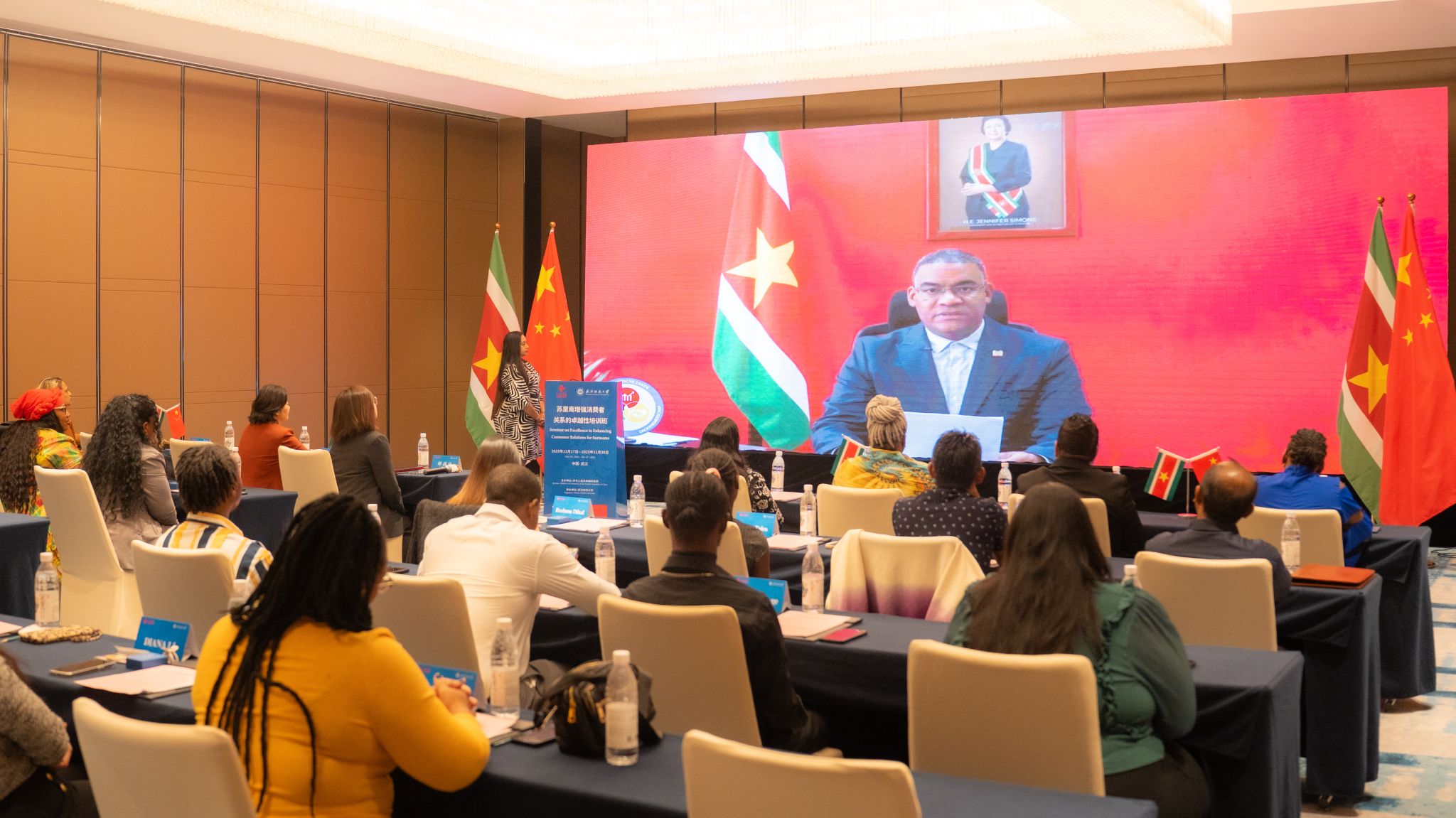 苏里南经济事务、创业与技术创新部部长Andrew Baasaron 在结业仪式上通过视频致辞,向中国商务部及武汉纺织大学表达诚挚谢意。他表示,本次培训进一步巩固了两国友好关系,期待持续深化务实合作,共同推动双边关系行稳致远。